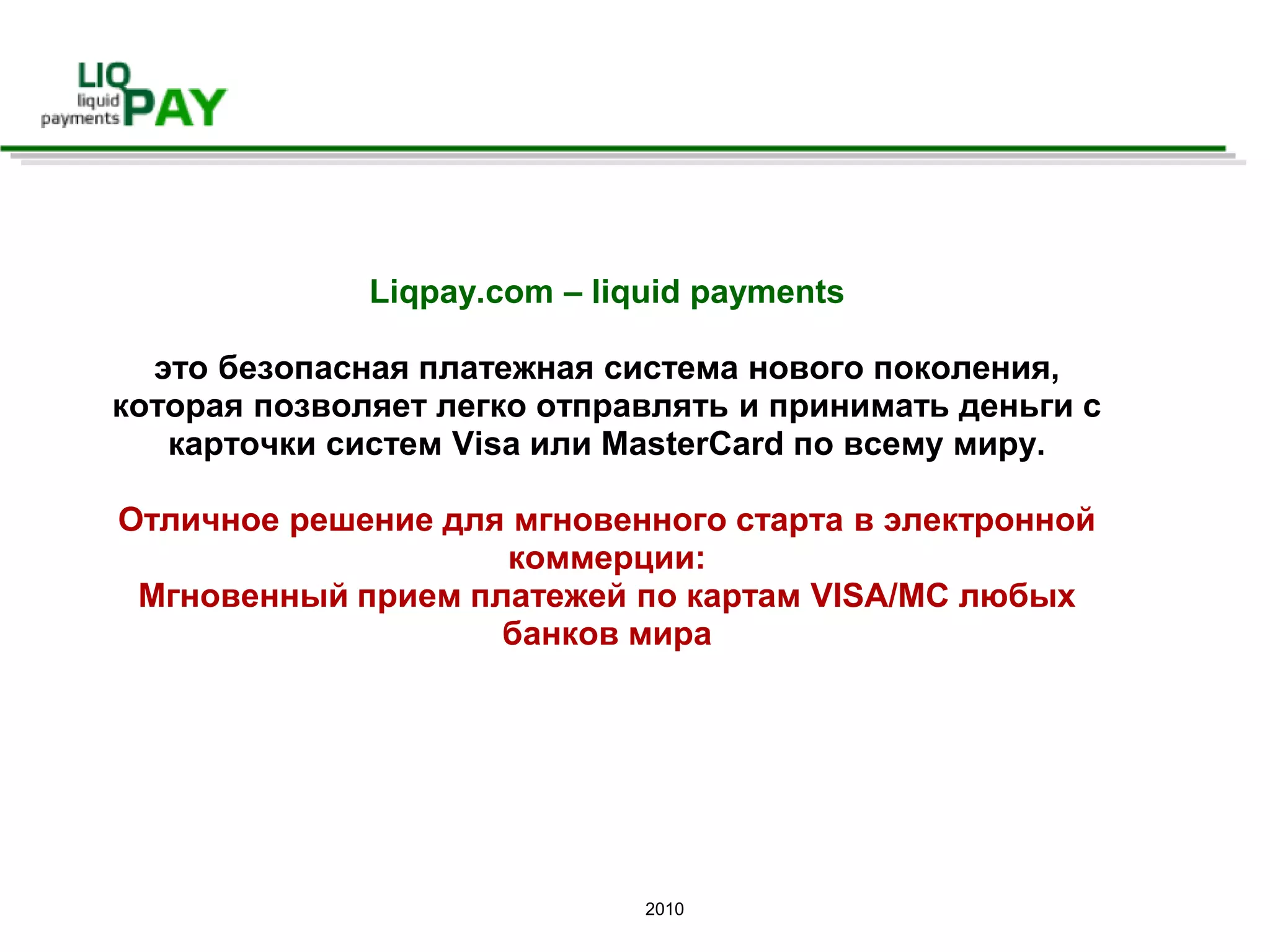 Liqpay.com — это безопасная платежная система, позволяющая отправлять и принимать деньги с карт Visa и Mastercard по всему миру. Она подходит как для частных переводов, так и для бизнеса, предлагая простые решения для приема платежей в интернете и массовых выплат. Система использует одноразовые пароли для безопасности и не имеет чарджбеков, что делает ее выгодной и удобной для пользователей.