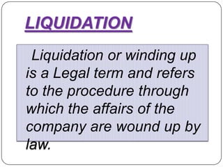 5. Distribute estimated surplus in order of priority - secured creditors, preferential creditors, debenture holders, unsecured creditors.