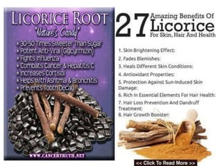 This document summarizes the botanical and chemical properties of liquorice. It describes liquorice as coming from the Glycyrrhiza glabra plant, native to India and China. Microscopically, it contains structures like cork, fibers, and starch. Chemically, it is known to contain saponins like glycyrrhetinic acid. It has various traditional medical uses as an expectorant and treatment for peptic ulcers. It is also used as a flavoring agent in foods and beverages.