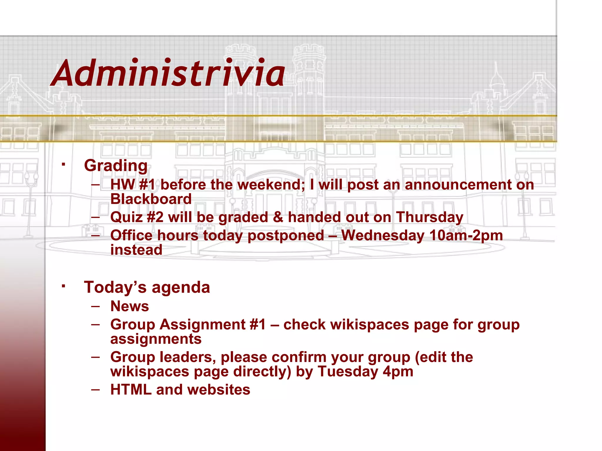 This document provides an overview of HTML and websites. It discusses HTML tags for basic webpage structure like <html>, <head>, and <body>. It also covers other common tags for formatting text, images, links, lists, and tables. The document demonstrates how to write basic HTML code and view a webpage in a browser. It briefly introduces iSpace, the web hosting service for FSU students to publish websites.