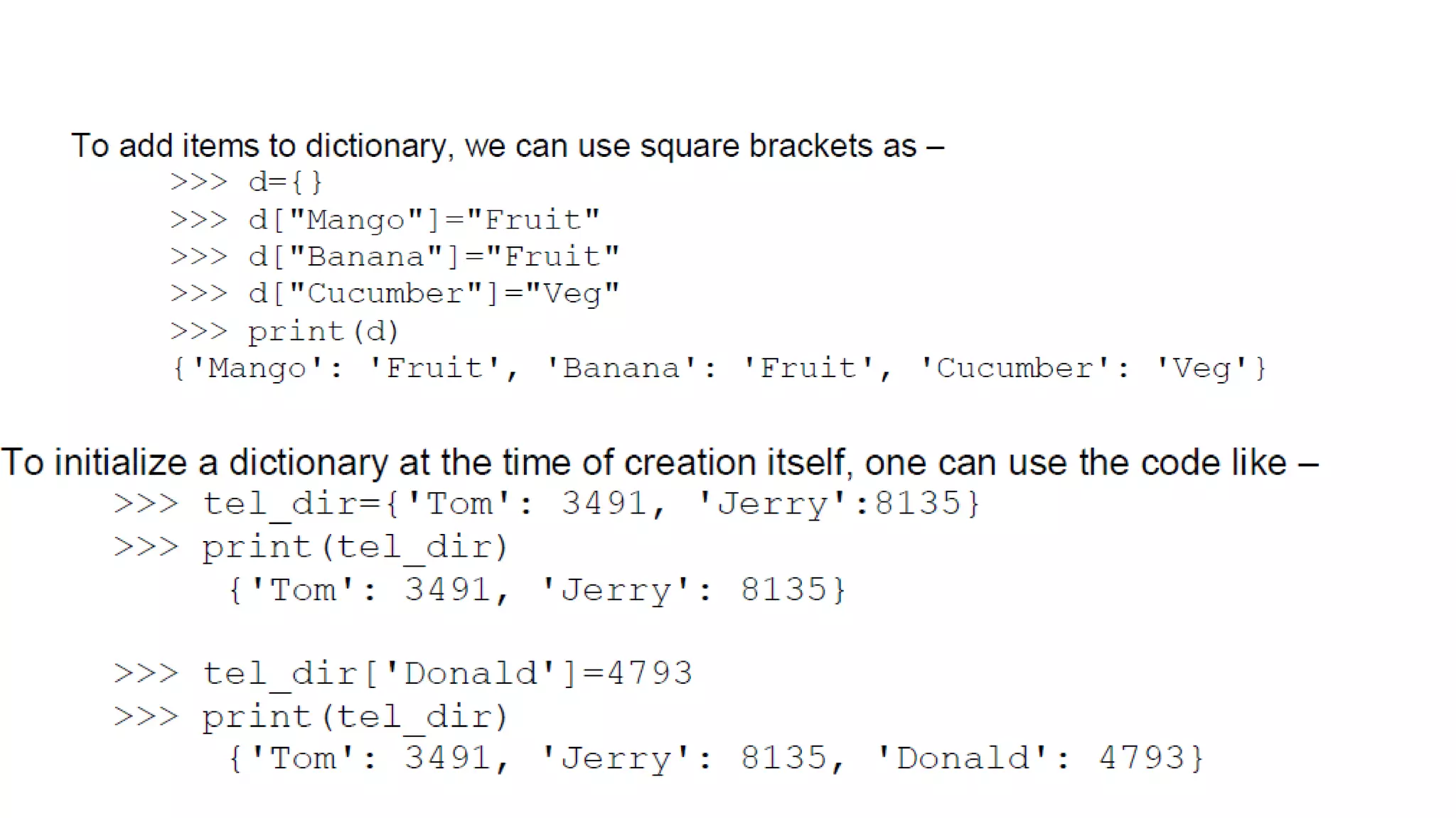 • A dictionaryis a collection of unordered set of key:value pairs with