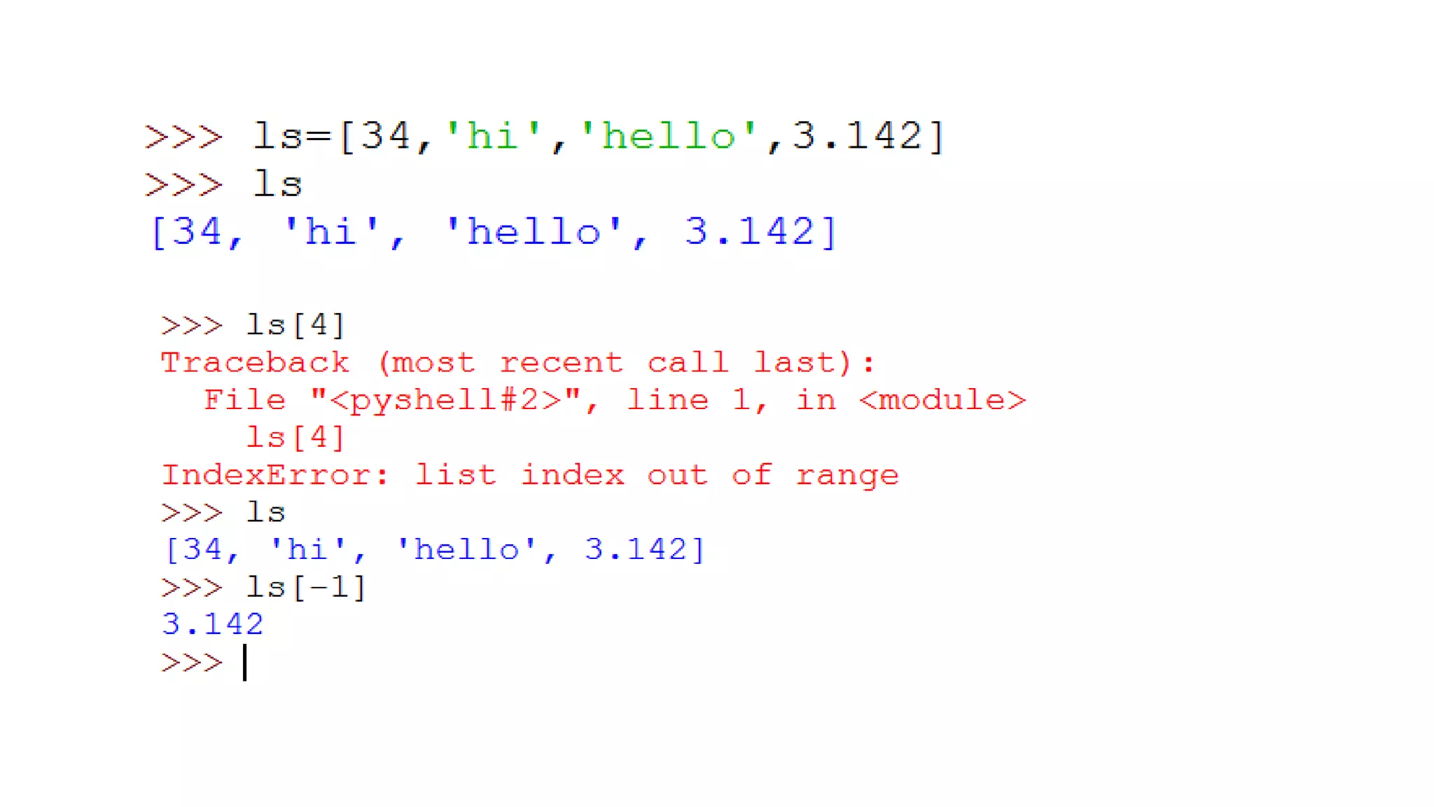 • Index operator [] is used to access an item in a list. Index starts from 0.