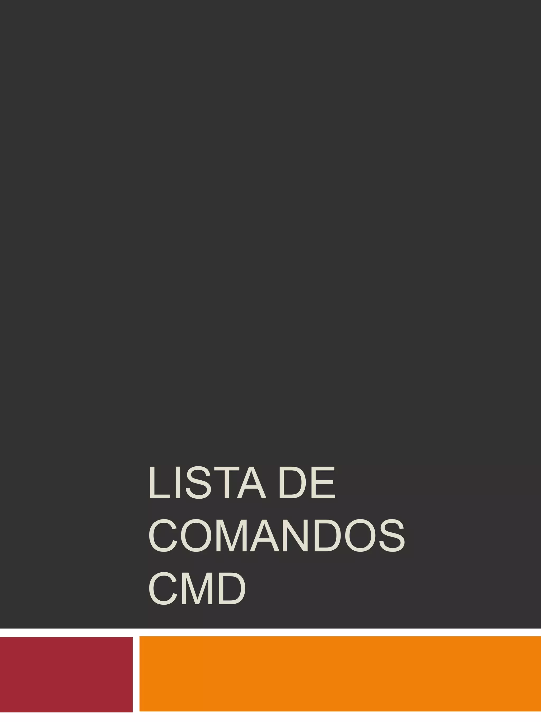 This document lists common Windows commands including Dir, Cls, Copy, Rename, Md, Cd, Rd, Tree, Date, IpConfig, Vol, Replace, Start, and Schtasks. Many of the commands are used for file, folder and directory management like viewing contents, creating, deleting, and navigating folders. Other commands provide system information like the date, network configuration, and volume label.
