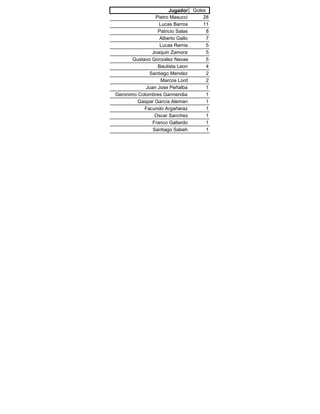 1. The document appears to be the standings and statistics from a youth soccer tournament called the Torneo Clausura Magister Club '11 Sub 12.