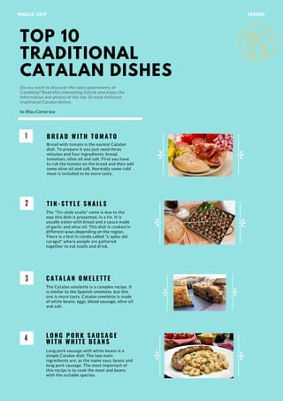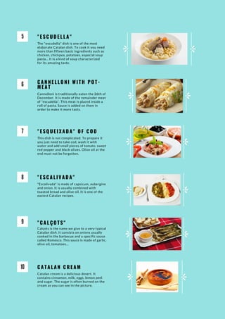 This document provides a list and brief descriptions of the top 10 traditional Catalan dishes, including: