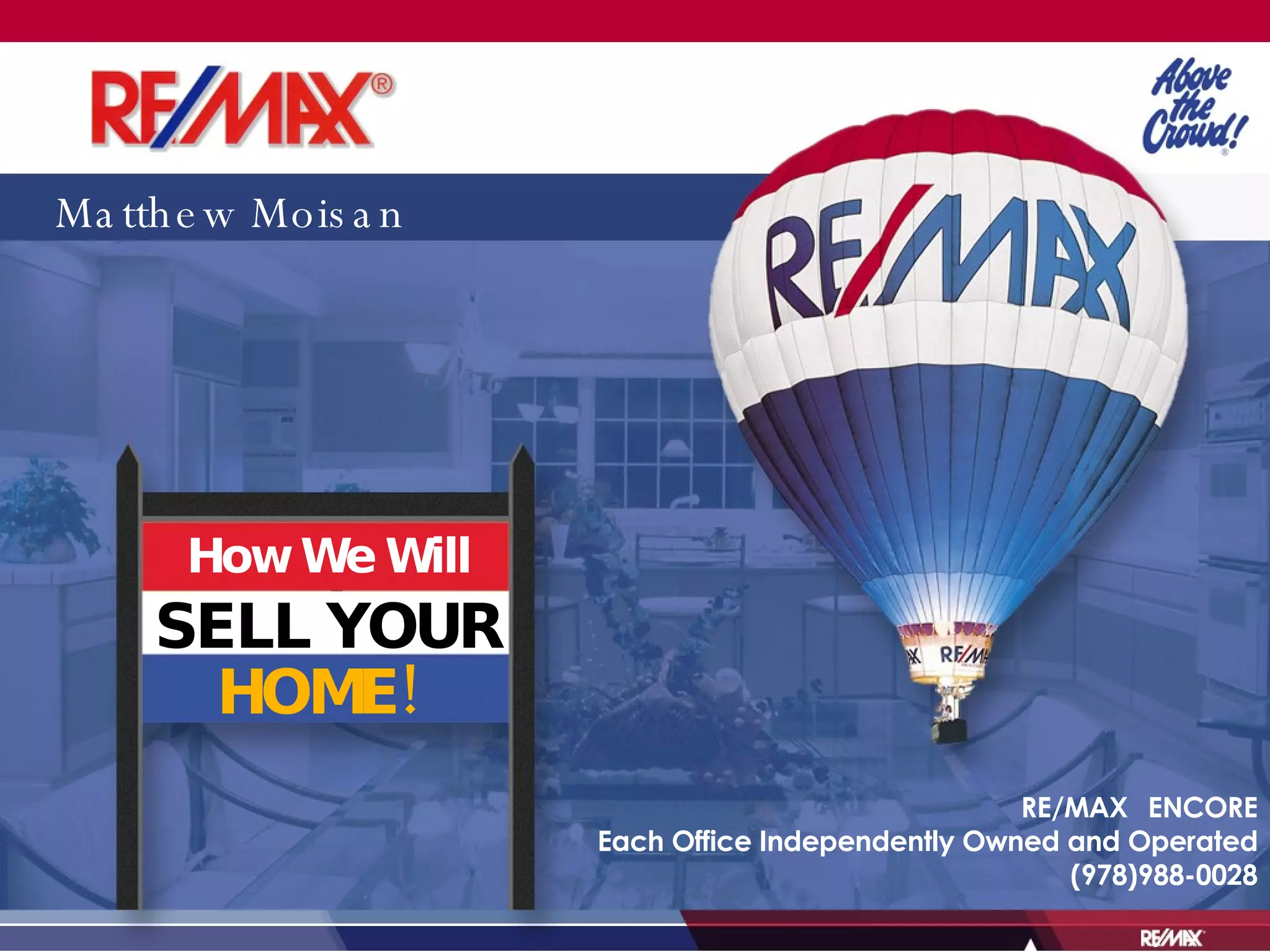 Matthew Moisan, a realtor at RE/MAX Encore, outlines his comprehensive marketing and pricing plans to effectively sell homes. The document details benefits of choosing him as a seller's representative, emphasizing the importance of MLS, internet exposure, and strategic pricing. Moisan aims to ensure sellers achieve maximum profit quickly and with minimal issues by employing proven strategies and maintaining open communication throughout the selling process.