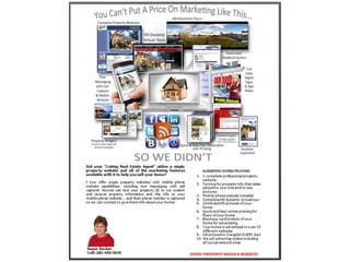 The document outlines the goals and services of a real estate agent, including providing training to help clients close an additional deal per month. It discusses strategies for attracting listings such as specializing in a property type or geographic area, farming neighborhoods through consistent marketing, and creating an ongoing local presence. The agent promises to assist with listing uploads, presentations, training, accountability and one-on-one support.