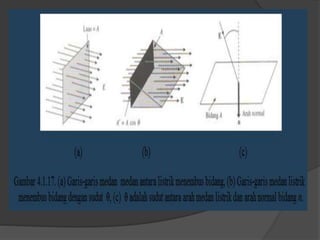 Dokumen ini membahas konsep dasar listrik statis, termasuk gaya Coulomb, medan listrik, energi potensial listrik, dan hukum Gauss, serta penerapan dalam kapasitor dan rangkaian kapasitor. Penjelasan mencakup rumus-rumus matematis terkait dengan medan listrik, beda potensial listrik, dan kapasitansi kapasitor. Selain itu, terdapat penjelasan mengenai rangkaian kapasitor seri dan paralel serta bagaimana hubungan antara muatan, tegangan, dan kapasitansi pada masing-masing jenis rangkaian.