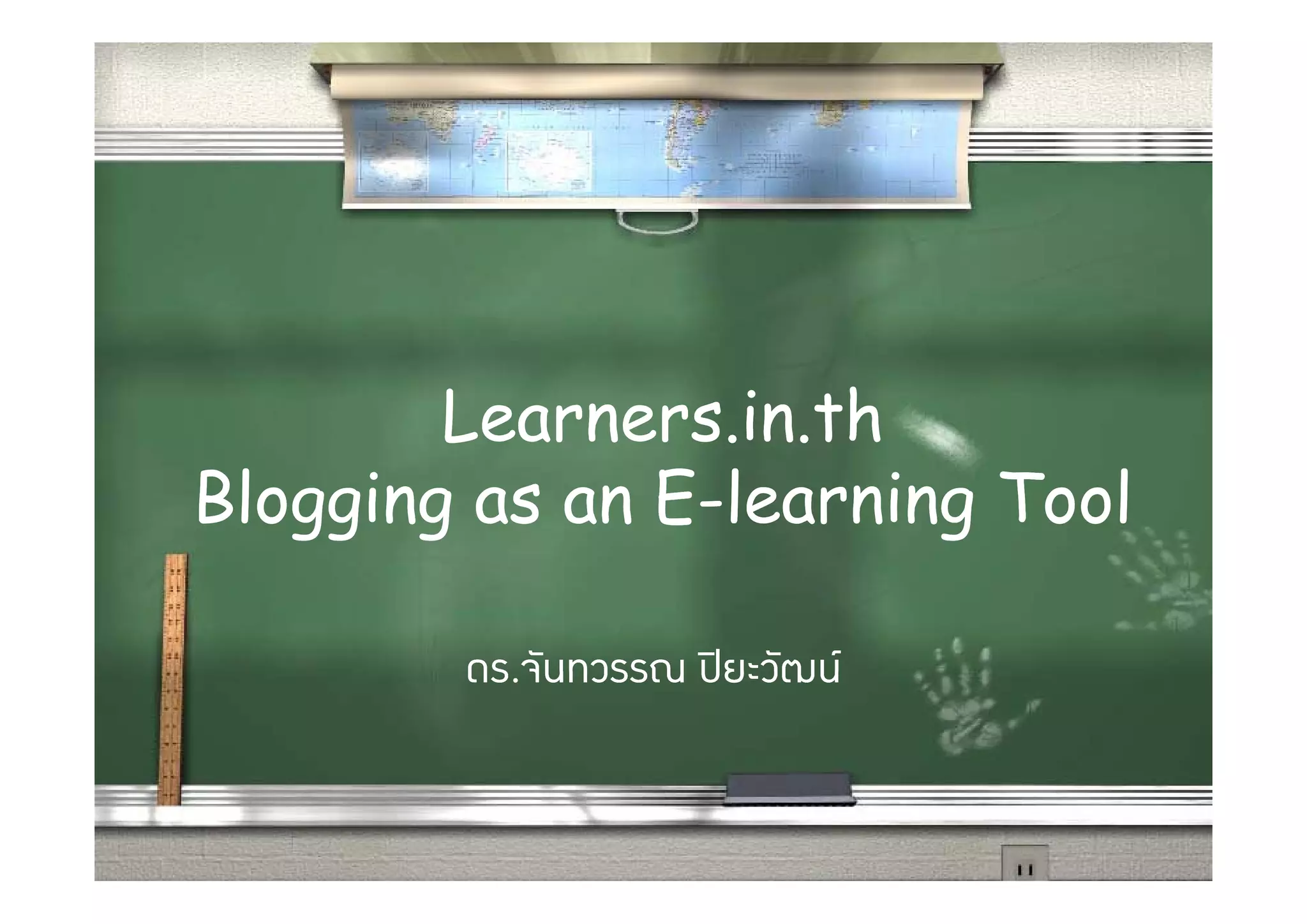 This document discusses using blogs as an e-learning tool. It presents blogging as part of a paradigm shift towards student-centered, active, and lifelong learning. Blogs and other new media tools like bookmarking, file sharing, asking questions, and real-time chat allow for 24/7 seamless e-learning. These tools can be used for class material management, assignments, discussions, and two-way communication between instructors and students. Using blogs and other e-learning tools shifts the focus from instructors to students and allows class time to be spent on pedagogy rather than administrative tasks. Implementing these tools can foster learning both within a university and for lifelong learning purposes.