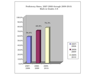2) A review of the district's success in meeting academic growth targets and increasing proficiency rates.