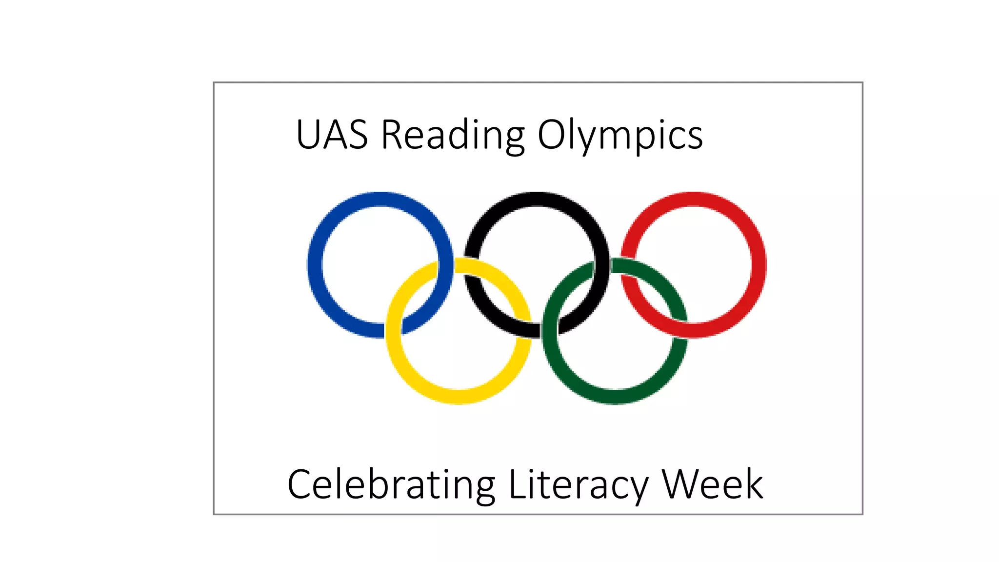 The document announces a Reading Olympics event for middle school students being held on March 3rd, 2016 from 12:00-12:55 PM to celebrate Literacy Week and a love of reading. Competitors are asked to respect the rules of the competition and commit themselves to reading in the spirit of the Olympics.