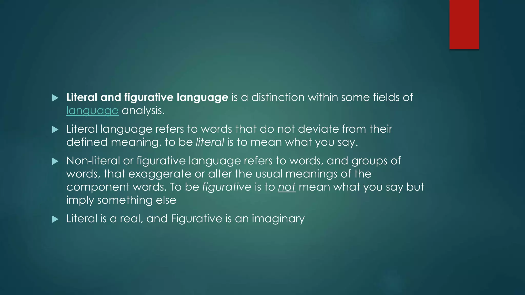 The document discusses literal and figurative language. Literal language means exactly what is said, while figurative language uses words or phrases in a non-literal way to imply a meaning. Figurative language is commonly found in poetry and can take various forms such as similes, metaphors, personification and more. It serves to make language more interesting by not always meaning what is literally said or read. Various figures of speech, sounds, and rhetorical devices are also described.