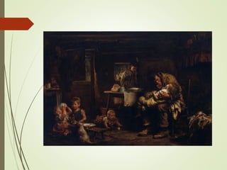 Naturalism developed as an extension of Realism in the late 19th century, influenced by scientific theories of the time. Naturalist writers portrayed humans as products of their environment and heredity, subject to forces outside their control. Major themes included humanity's smallness in an indifferent universe and the influence of factors like genetics and socioeconomic conditions on people's lives and ability to make choices. Works often portrayed the harsh realities of life for the working class and sought to expose cruelty in economic and social systems.