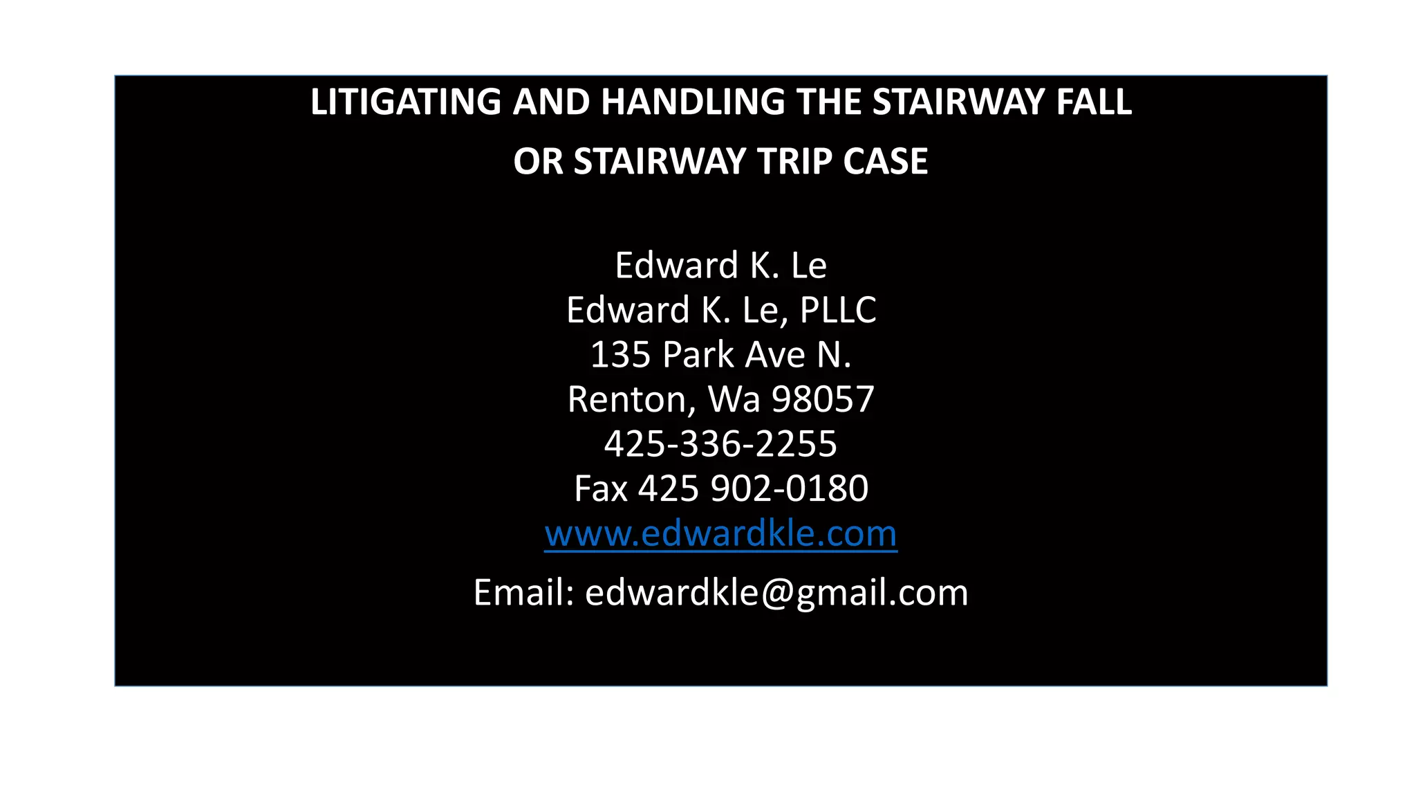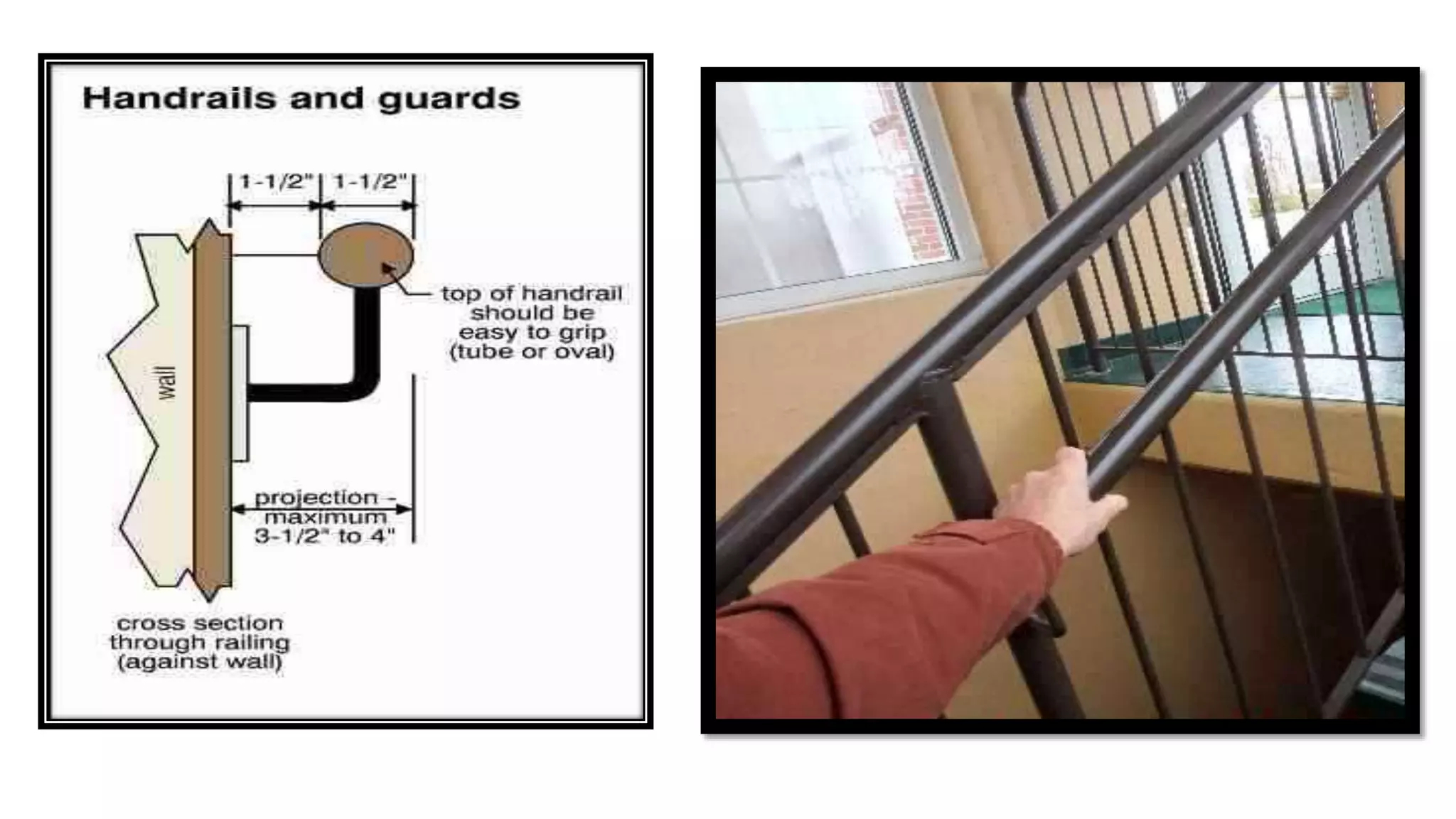 The document provides guidelines for litigating stairway fall or trip cases, focusing on the biomechanics of walking and key safety components like treads, handrails, and the importance of risk assessment in stairway design. It outlines uniform building code requirements for riser and tread safety, emphasizing the need for inspections and proper proportions to avoid hazards. Additionally, it discusses the necessity of graspable handrails and adequate landings to enhance stair safety.