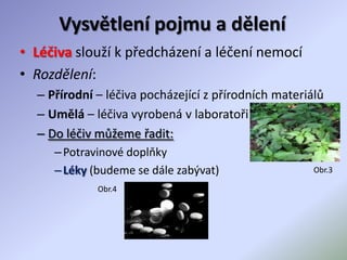 – Přírodní – léčiva pocházející z přírodních materiálů