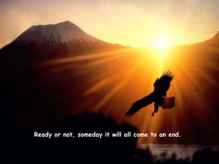Ready or not, someday life will come to an end. What really matters is not what you acquired or achieved, but how you lived your life and impacted others. A life that matters is defined not by wealth, fame or accomplishments, but by acts of compassion, sacrifice, integrity and character that inspire others long after one is gone.