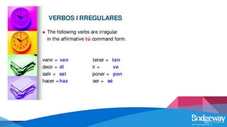 3. An introduction to affirmative and negative commands in the informal "tú" form, including irregular verbs.