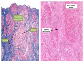 1. Liver cirrhosis is the end stage of many chronic liver diseases and is characterized by diffuse hepatic fibrosis and parenchymal nodule formation.