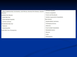 This document provides an overview of evaluating and diagnosing liver disease. It discusses classifying liver diseases as hepatocellular, cholestatic, or mixed based on etiology and evaluating disease severity and stage. Common symptoms, diagnostic tests, clinical findings, and classifications such as Child-Pugh staging for cirrhosis are outlined.
