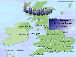 Liverpool is a city in northeast England known for its Victoria and Nelson monuments as well as the Arkinetia museum. It is also home to the famous football clubs Liverpool F.C. and Everton F.C., and gained worldwide fame as the hometown of The Beatles music group consisting of John Lennon, Paul McCartney, George Harrison, and Ringo Starr.