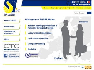 Living and Working in Malta provides information to help Europeans relocate to Malta for employment. It discusses Malta's geography, economy, popular industries, unemployment rates, minimum wage, working conditions, and procedures for finding a job, obtaining necessary documents, taxes and costs of living. The document recommends securing a job and temporary housing before moving, and covers healthcare, pensions, voting rights, and buying or renting a home in Malta.