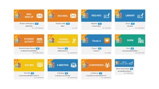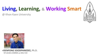 The document discusses KKU's smart campus initiatives and digital roadmap from 2558-2563 (2015-2020). It provides an overview of KKU's current digital infrastructure including WiFi access points, data centers, labs and systems. It then outlines KKU's goals to enhance infrastructure, implement smart services and management, improve learning and research resources, expand content delivery and productions, and increase digital literacy over the next 5 years.