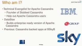 The document discusses building fault tolerant Java applications using Apache Cassandra. It provides an overview of fault tolerance, Cassandra's architecture, failure scenarios, and using the Cassandra Java driver. Examples are given of modeling data in Cassandra and performing common operations like getting all events for a customer or events within a time slice.