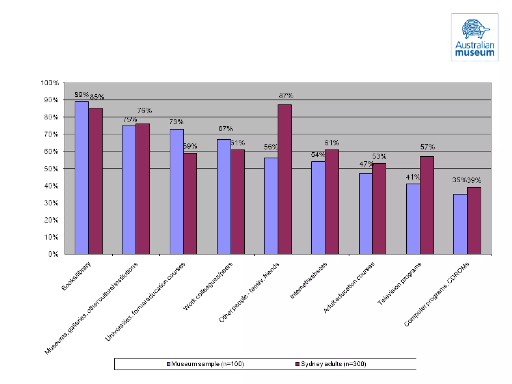 The document discusses the changing role of museums in a Web 2.0 world where lifelong learning is emphasized. It notes the history of audience research in museums and focuses on making museums more visitor-centered and accessible for diverse audiences. The document advocates for constructivist exhibitions that allow free choice, multiple entry points, and user-controlled learning. It also stresses the need for museums to recognize how social media and Web 2.0 can impact the physical museum experience and engage visitors wherever they are.