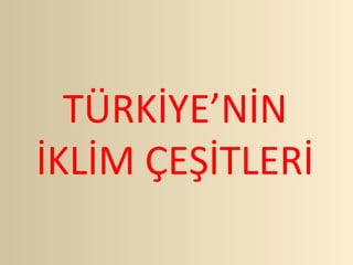 kullanılan ölçütler esas alınarak,ülkemizde şu iklim tipleri ayırt