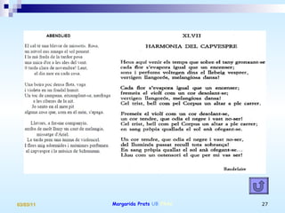 VIDA I ESCRIPTURA Vida al marge cenacles literaris Lectures: ampli ventall Tradició catalana i europea i obra poetes coetanis. Resposta literària a una progressió de renúncies de marginació de la societat i de trencament d’expectatives. Període breu de composició de l’obra amb què volgué ser conegut com a poeta.