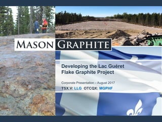 - The document is a corporate presentation from Mason Graphite discussing their Lac Guéret Flake Graphite Project.