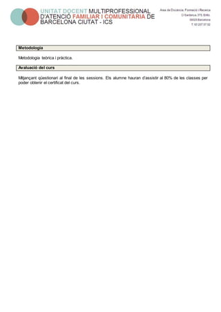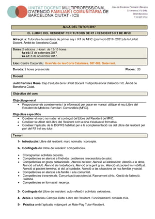 Adreçat a: Tutors/es de residents de primer any i R1 de MFiC (promoció 2017- 2021) de la Unitat