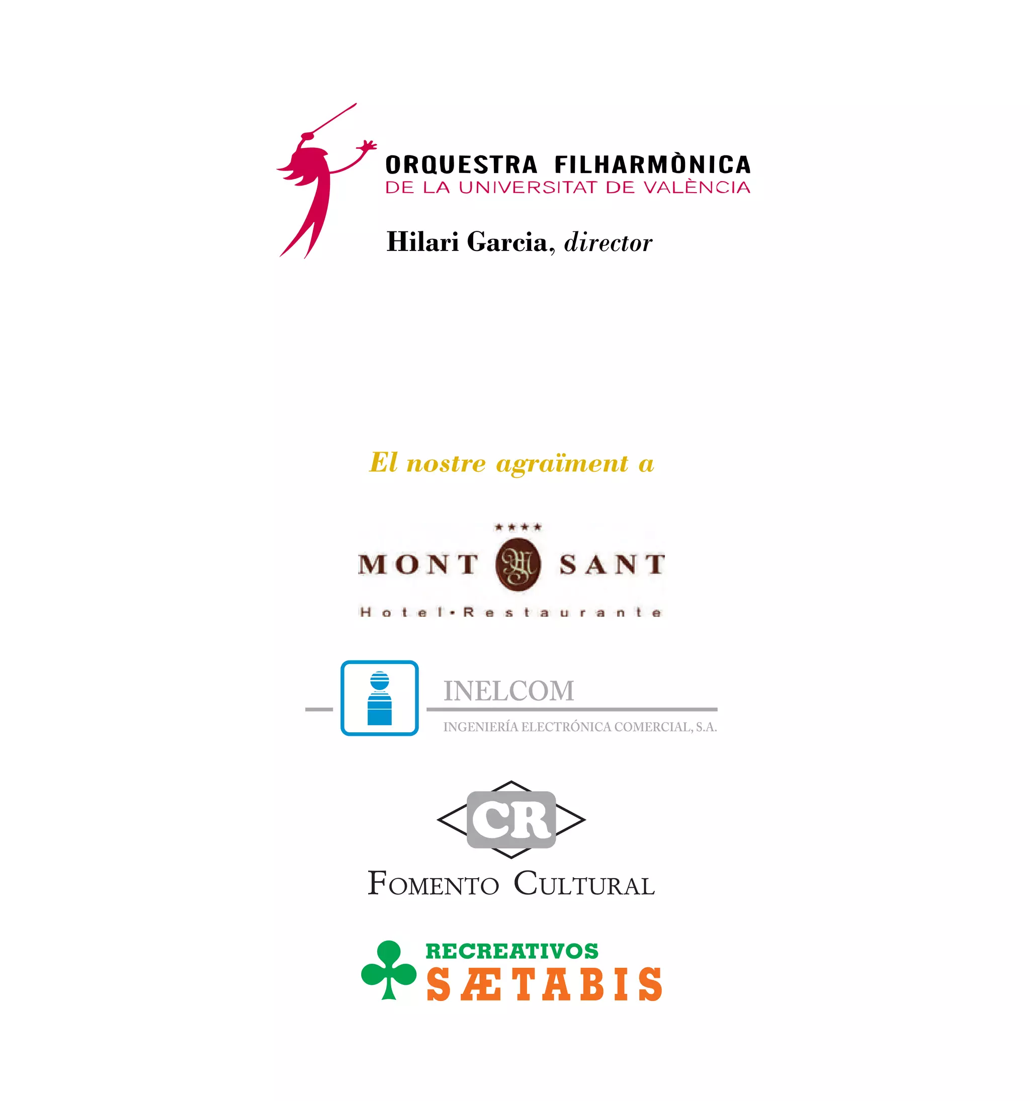 diverses orquestres nacionals i internacionals com l’Orquestra Simfònica del Teatre Chapí de Villena, l’Orquesta Sinfónica