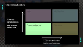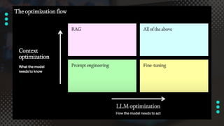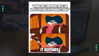 The document outlines a webinar on production-level management of large language models (LLMs) scheduled for December 6, 2023, featuring panelists who discuss LLM operations, tooling, and prototyping techniques. Key topics include aligning processes for building LLM applications, utilizing various industry-standard tools such as Langsmith, and strategies for improving model performance and user experience. The webinar also highlights the importance of retrieval-augmented generation and practical approaches for engineers and data scientists in the evolving AI landscape.