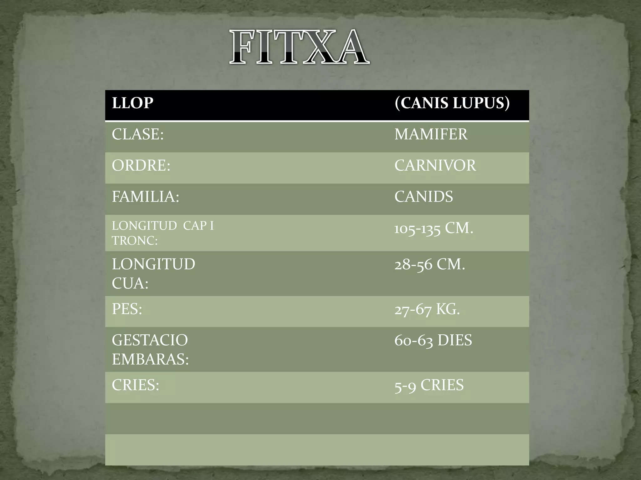 mascles. Els llops poden mesurar d’1,3 a 2 metres des del musell fins a la