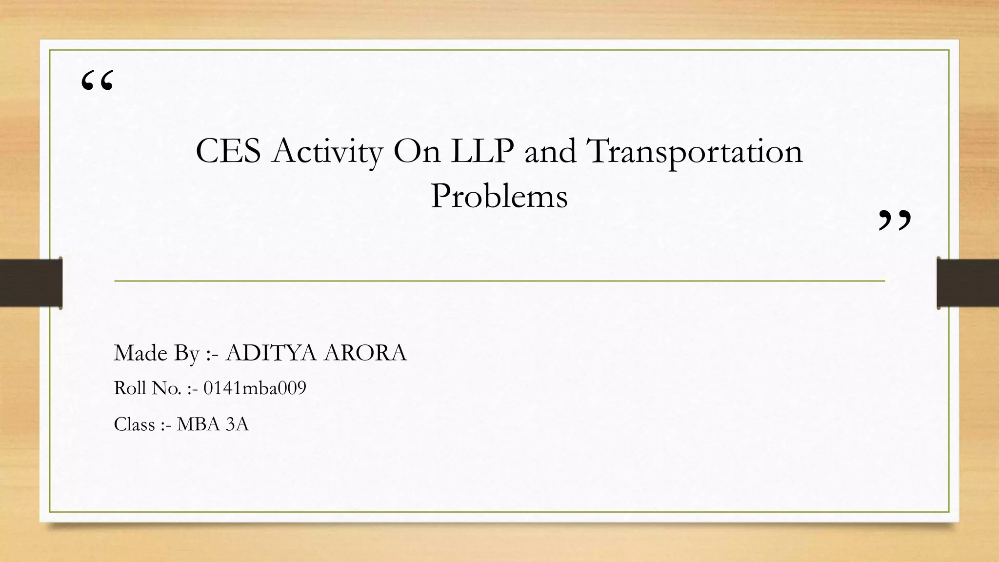 This document presents a linear programming problem and a transportation problem to determine the optimal allocation of scarce resources and plant location.
