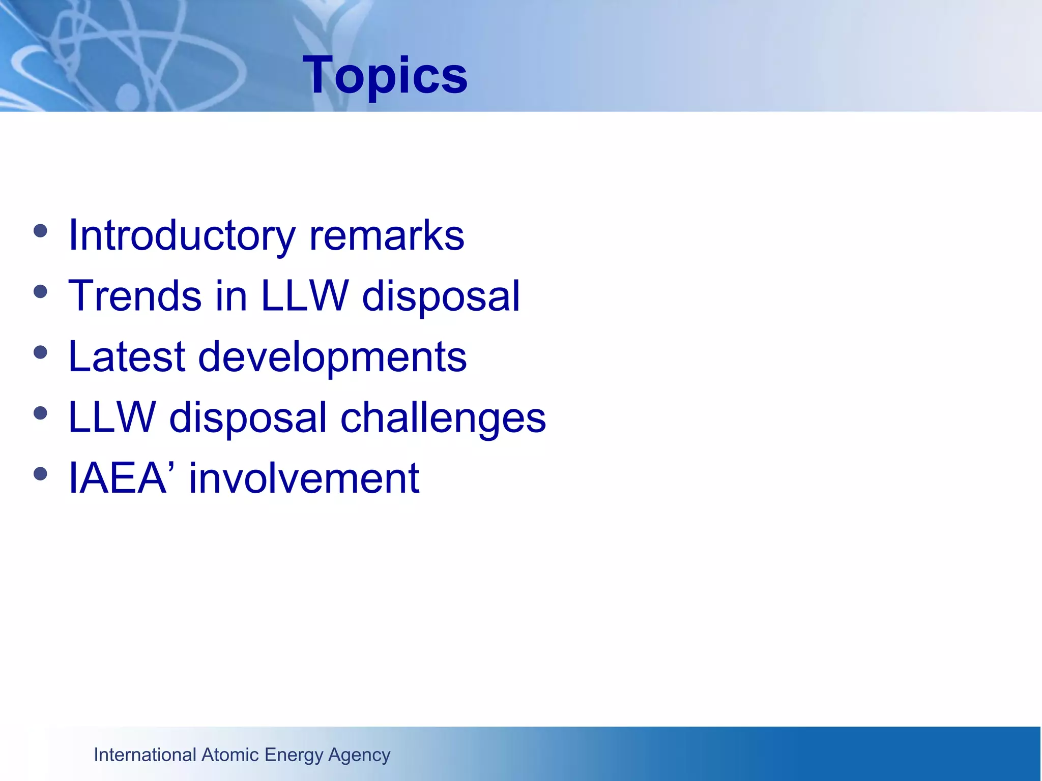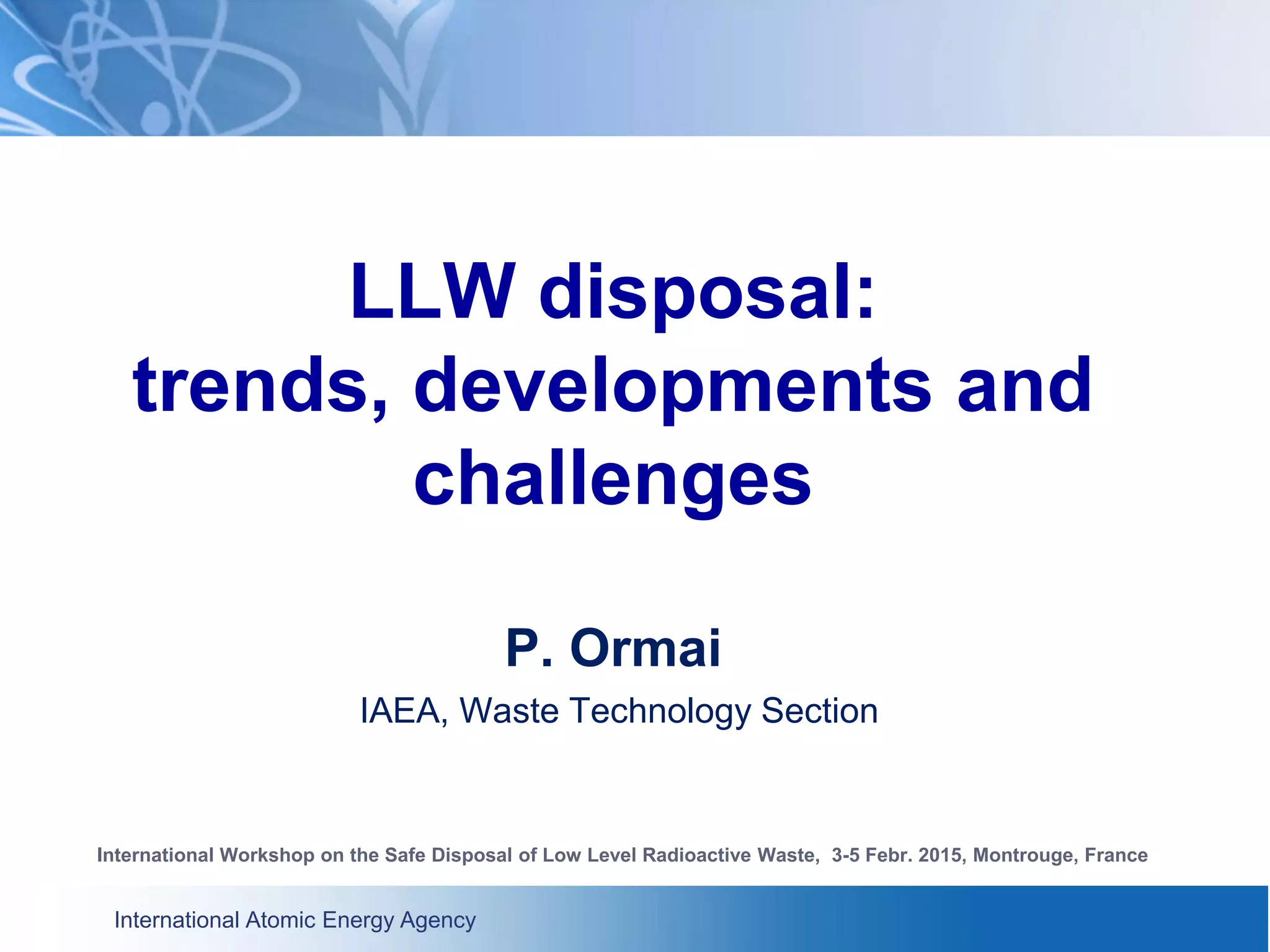 This document discusses trends, developments, and challenges in low-level radioactive waste (LLW) disposal. It notes that over 100 LLW repositories are now in operation worldwide, representing a variety of disposal designs implemented to suit different waste streams and conditions. Ongoing developments include facility expansions to accommodate more waste, as well as optimization efforts to reduce costs. Recurring challenges include maintaining safe operations, handling new waste streams, and demonstrating long-term disposal safety. New challenges involve waste types like radioactive graphite and sodium alloys arising from decommissioning. The document also examines disposal options for disused sealed radioactive sources, including borehole facilities.