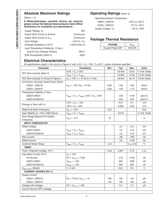 The LM231/LM331 family of integrated circuits are precision voltage-to-frequency converters suited for analog-to-digital conversion and other applications. They output a pulse train whose frequency is precisely proportional to the input voltage. The devices use a temperature-compensated bandgap reference for excellent accuracy over a wide temperature range from 4V to 40V supply. They can drive TTL loads or provide higher voltage outputs while being short-circuit proof. Key features include high linearity, temperature stability, and wide dynamic range at frequencies from 1Hz to 100kHz.