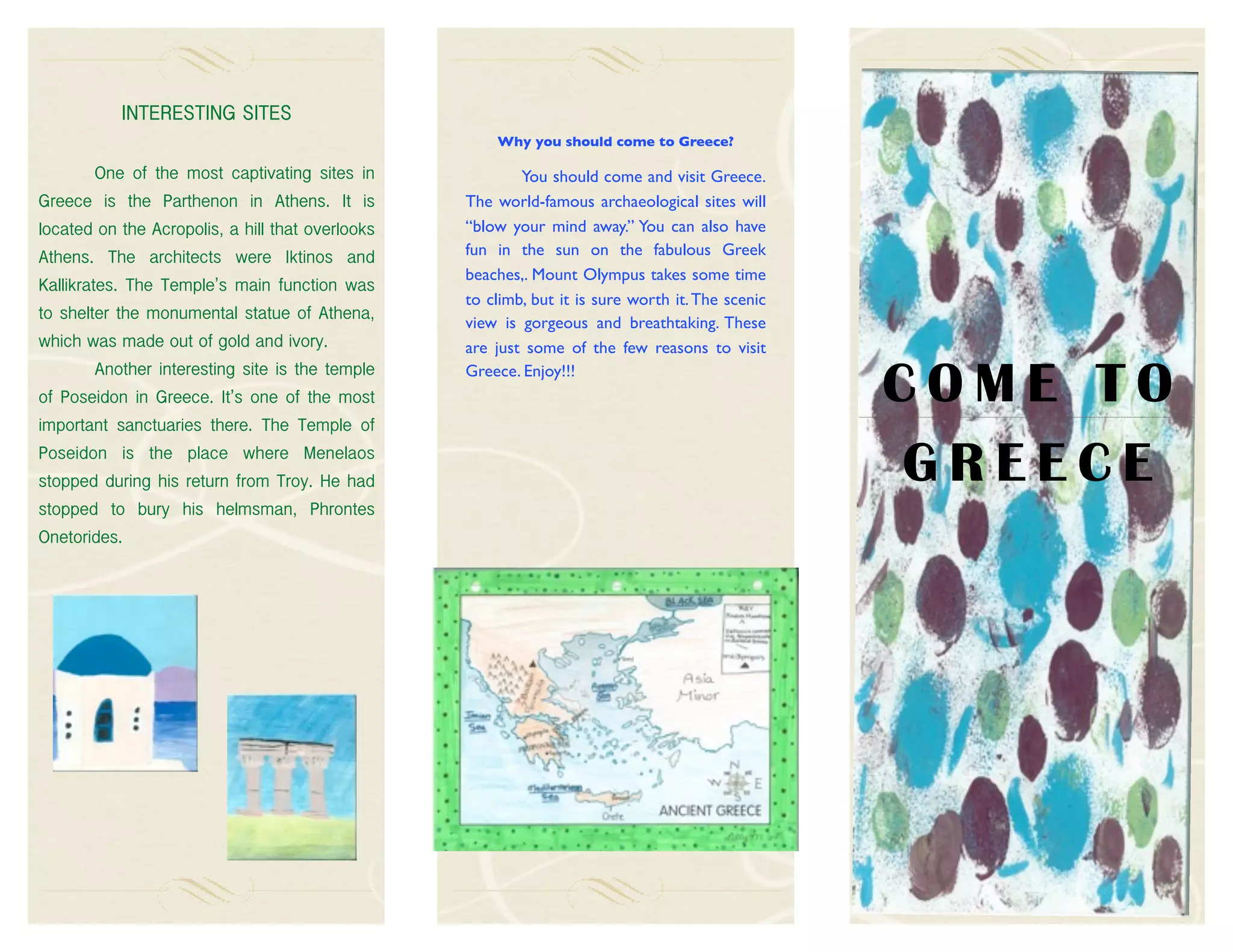 Greece has many interesting archaeological and natural sites that make it a worthwhile place to visit. Some of the most notable sites include the Parthenon in Athens, located on the Acropolis overlooking the city, and the Temple of Poseidon, one of the most important Greek sanctuaries. Visitors can also enjoy beautiful beaches and scenic views from Mount Olympus. With its rich history and geography including mountains, islands, and coastal areas, Greece offers visitors an opportunity to experience world-famous archaeological sites and natural beauty.