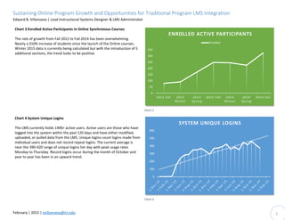- Enrollment in online courses has increased over 310% from 2012 to 2014. Usage of the LMS has grown steadily, now averaging 390-420 unique logins per day.