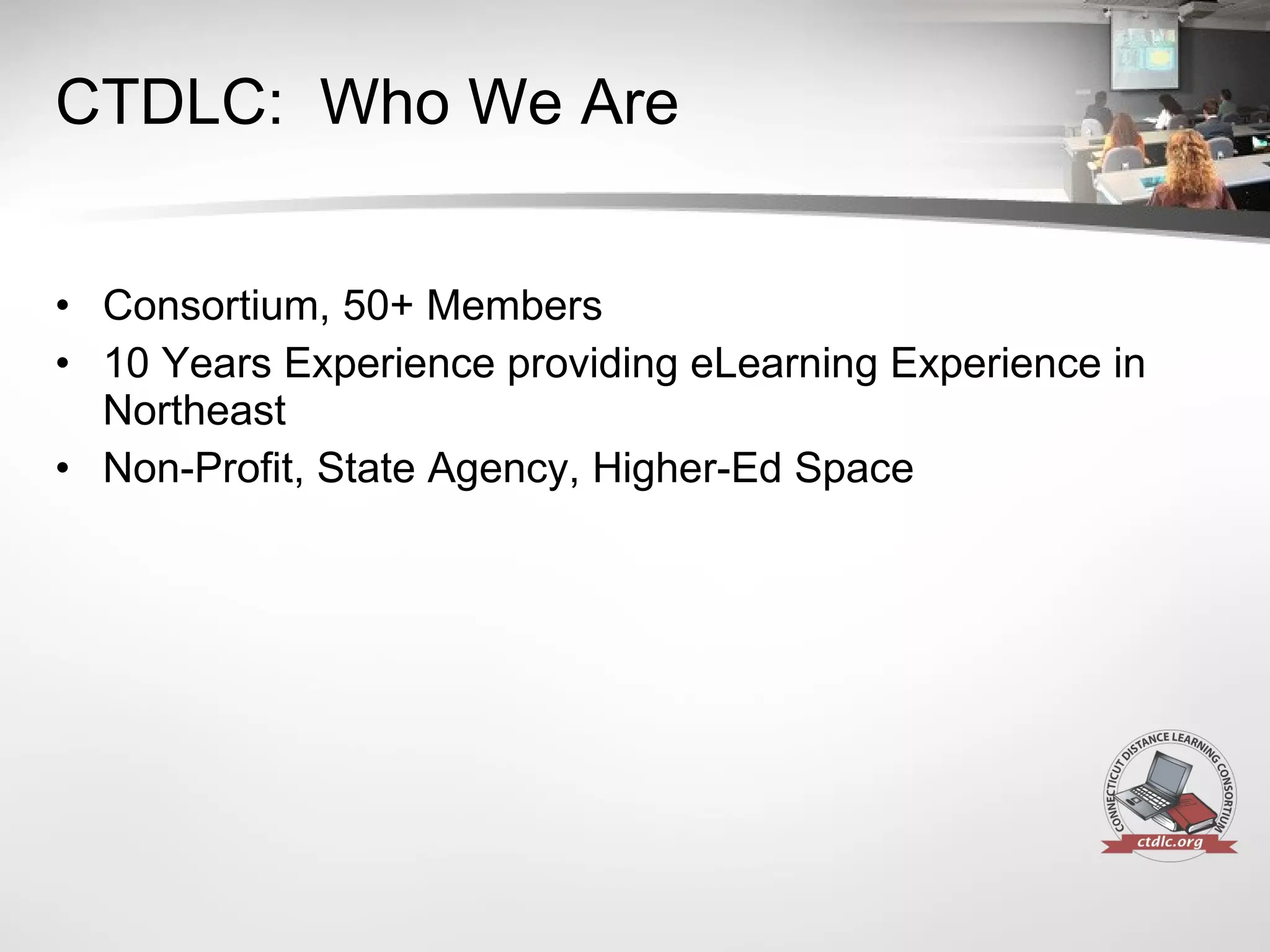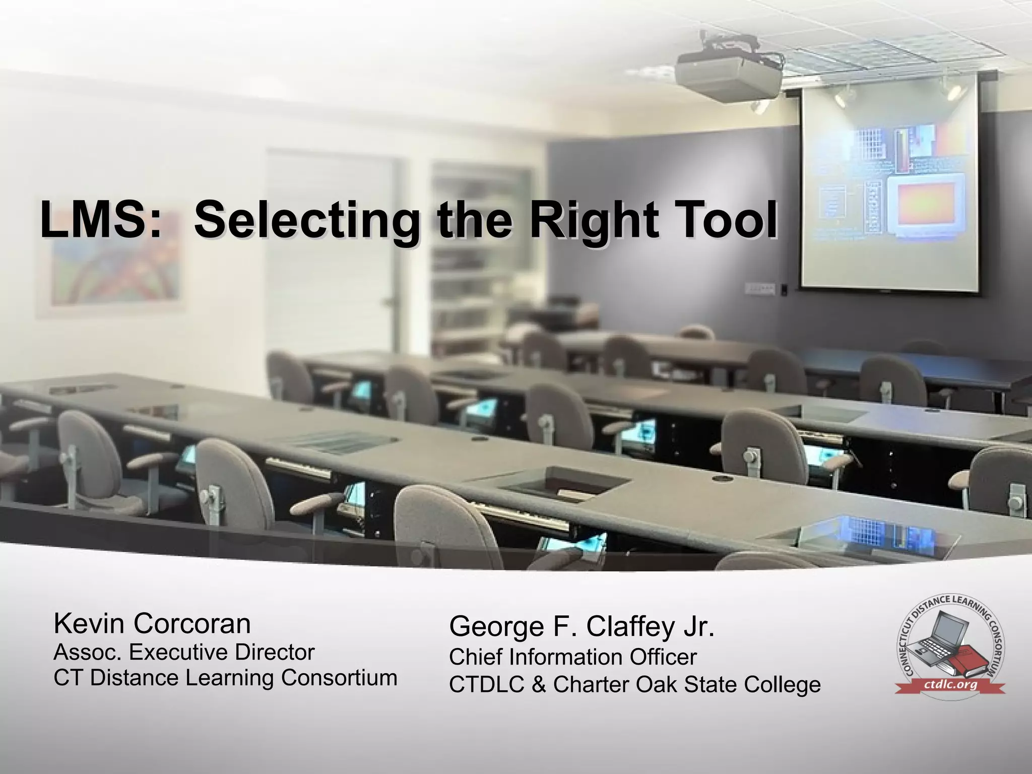 The document discusses the Connecticut Distance Learning Consortium's (CDLC) experience and services related to e-learning and learning management systems (LMS). It outlines challenges faced by higher education institutions, particularly financial constraints and the need for collaboration to improve online learning capabilities. The piece emphasizes strategic decision-making in selecting LMS tools and managing resources effectively amidst budget cuts and changing technology demands.