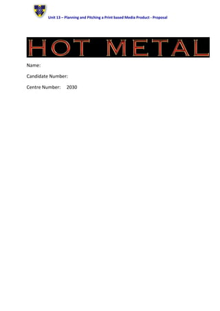 1) The document proposes a 16-page monthly magazine focused on heavy metal music, titled "Rock Dance".