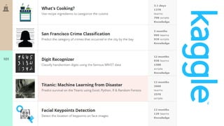 This document discusses algorithms and where to learn about them. It provides examples of algorithms like autocomplete, recommendations, and spam detection that are used widely. It also lists several online resources for learning about machine learning, including Kaggle, Reddit forums, online courses from MIT, Codecademy, Coursera and edX.