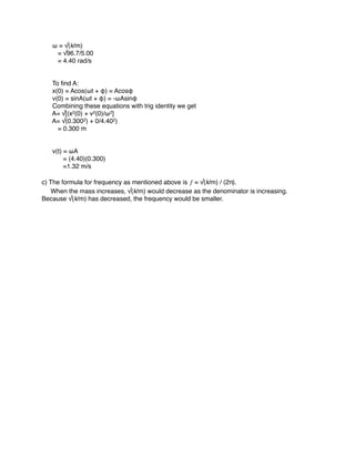 2) Using the given frequency and mass, the spring constant is calculated to be 96.7 N/m.