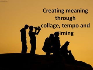 Editing involves joining images together to create meaning and tell a story. Key techniques editors use include creating collages through montage, controlling tempo through varying shot lengths, and precise timing of shots. Editing also manipulates time through techniques like condensing or expanding scenes. Arranging the order of events, using flashbacks, and cutting between shots can confuse or clarify the narrative. Precise shot selection, through techniques like close-ups and establishing shots, draws viewers' attention to important details. Conversation scenes are crafted through shot reverse shot patterns and matching characters' eye lines. These techniques shape the story and its meaning.