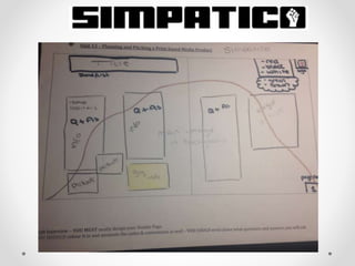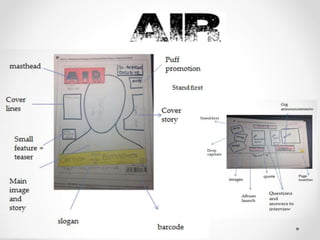 This document outlines plans for two proposed print magazines - A.I.R. and Simpatico. Both magazines would target a similar audience to NME magazine, covering indie, rock, and alternative music genres. They would include articles, reviews, photos and more. A.I.R. would cost £3.50 weekly while Simpatico would be £2.50 weekly. Production methods, budgets, promotion strategies and future development possibilities are also discussed for each magazine idea.