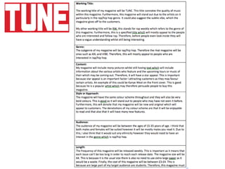 The document provides details for the planning and production of two hip hop music magazines called Tune and RW Magazine.