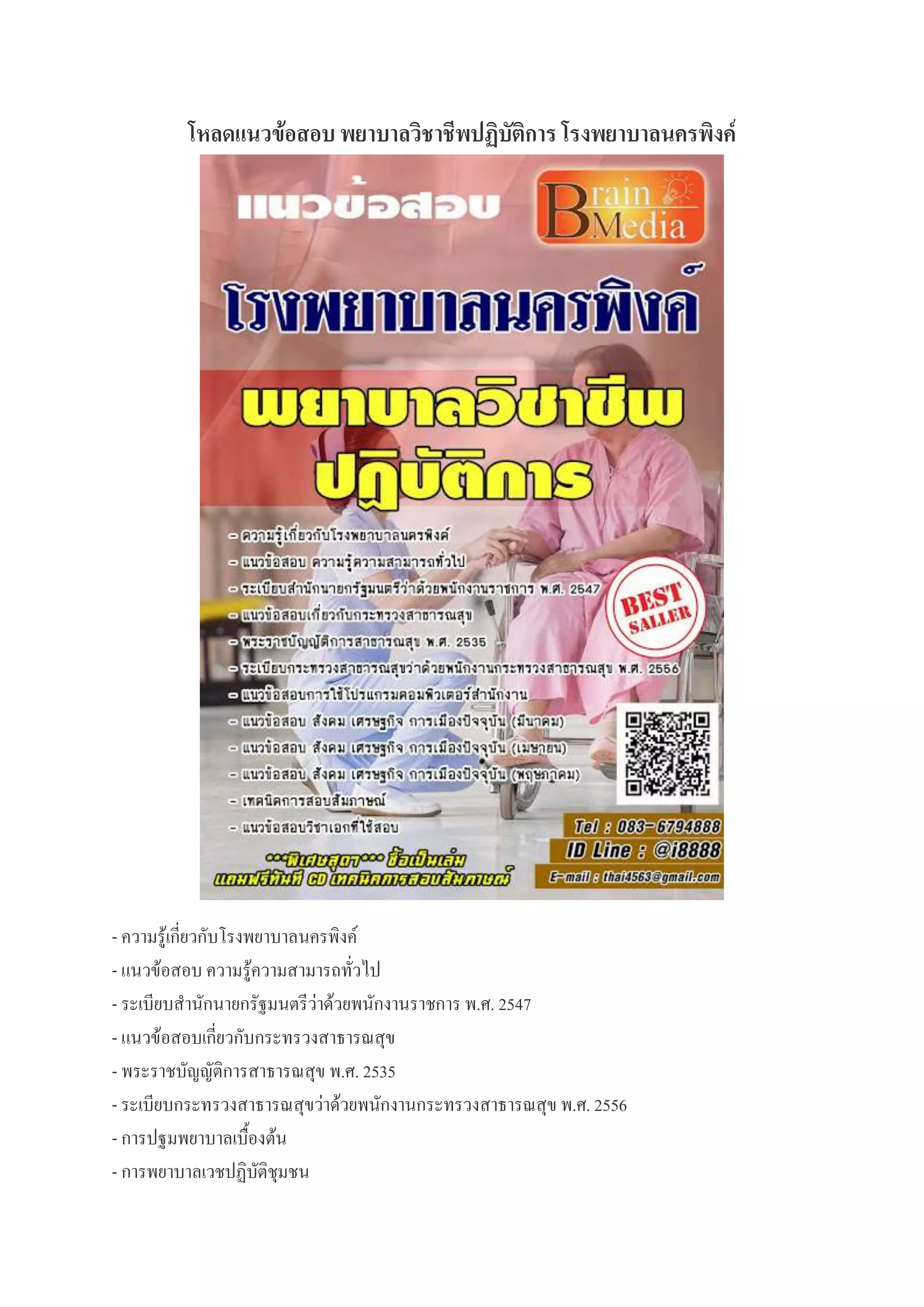 Loadแนวข้อสอบ พยาบาลวิชาชีพปฏิบัติการ โรงพยาบาลนครพิงค์