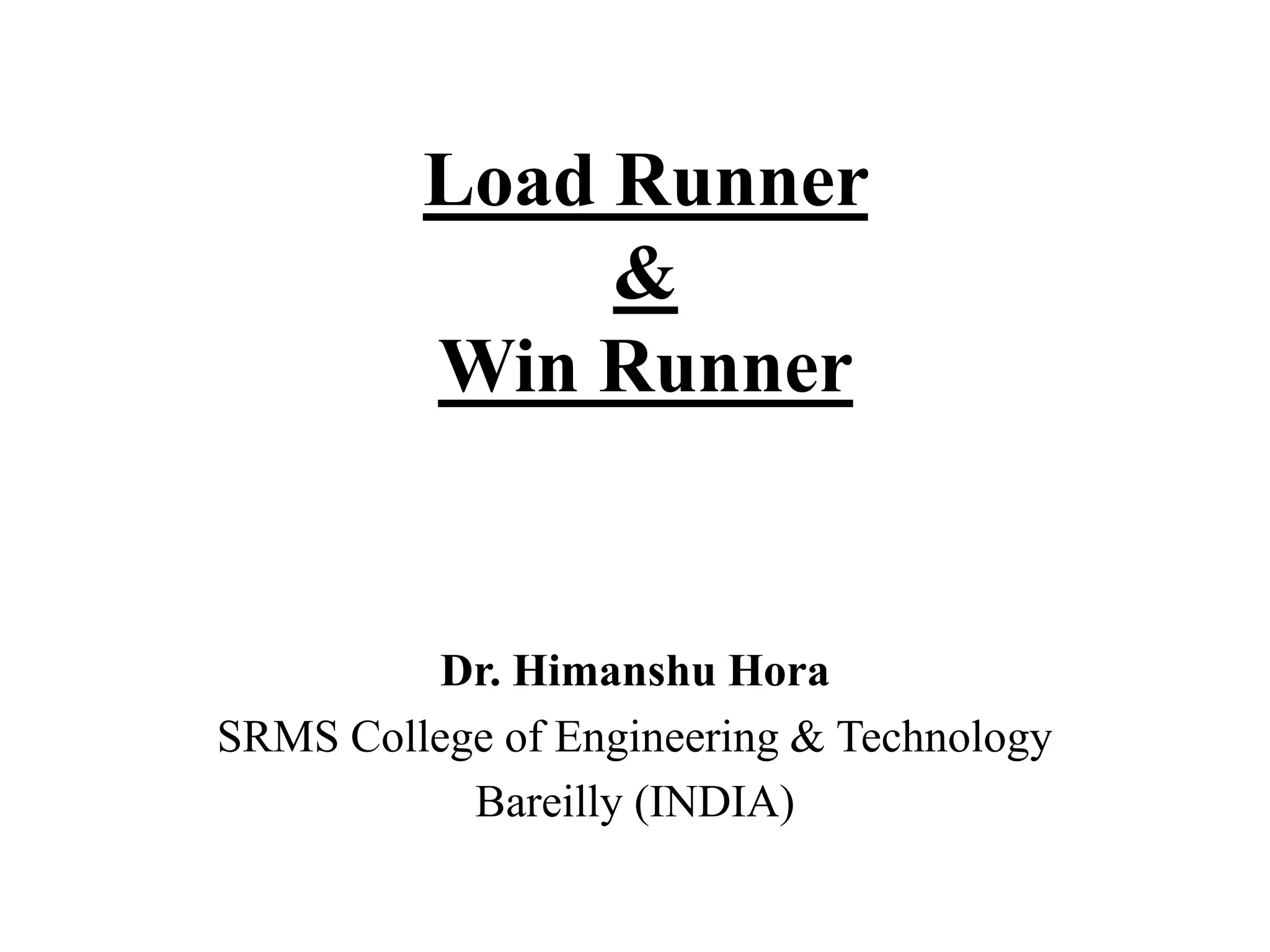 This document provides an introduction and overview of Load Runner and Win Runner software. Load Runner is an automated performance testing tool from HP that examines system behavior under load. Win Runner is an automated functional GUI testing tool that allows recording and playback of user interactions as test scripts. Both were originally developed by Mercury Interactive, which was acquired by HP. The document describes how each tool works, their typical processes, and provides some facts about Load Runner and Win Runner.