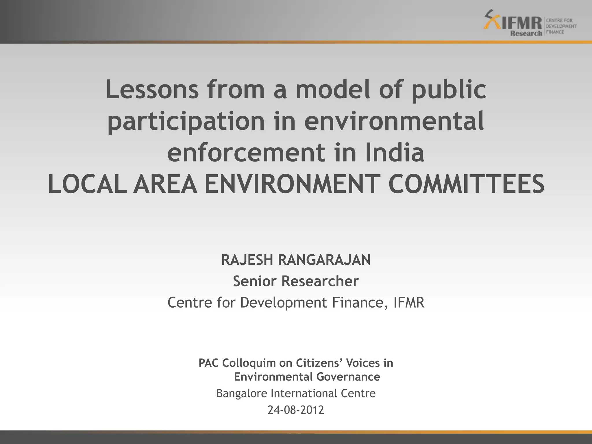The document discusses the lessons learned from the Local Area Environment Committees (LAEC) model in India, highlighting the need for public participation in environmental governance. It emphasizes the benefits of community involvement in hazardous waste management and the challenges in achieving genuine representation and sustainability within the framework. The LAEC model has shown positive outcomes but raises questions about its replicability and lasting impact on governance processes.